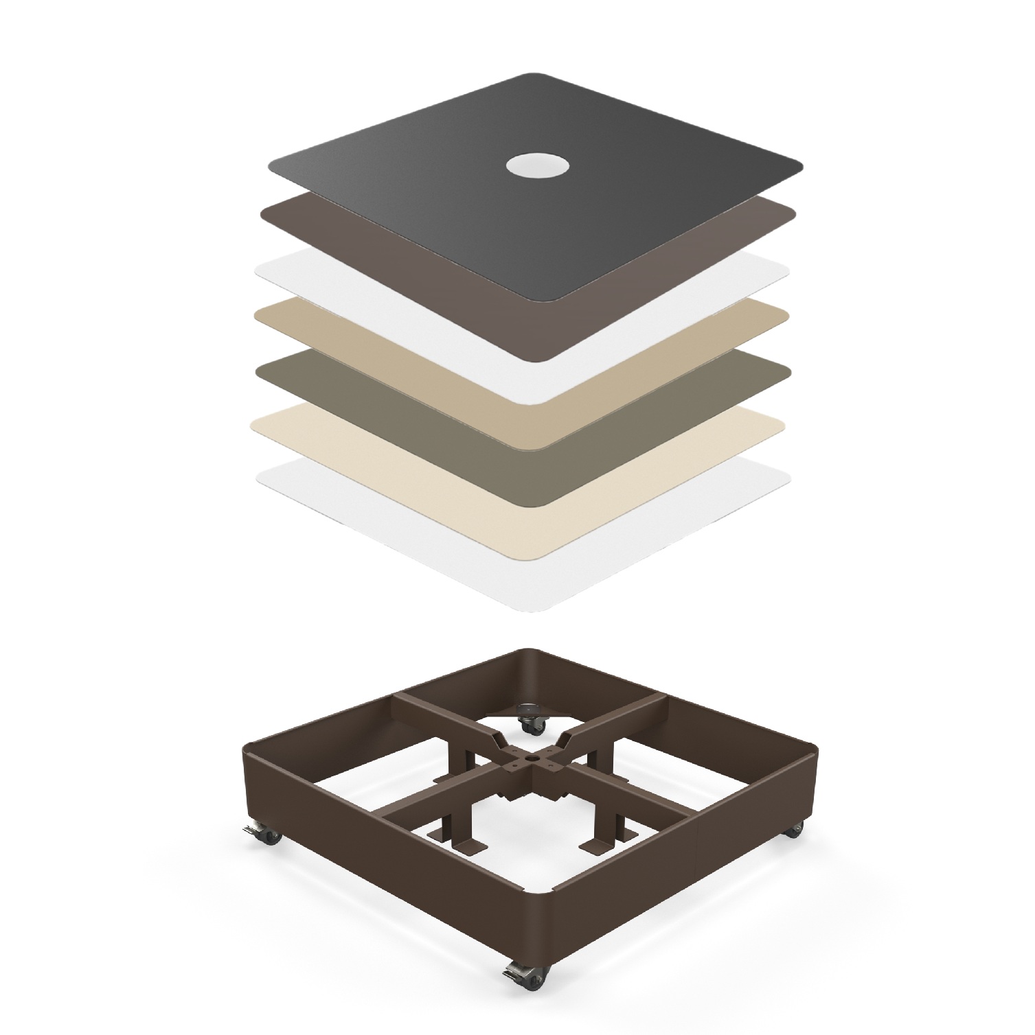 Het base frame van deze parasolvoet is in de kleur Bronze. Met de 7 verschillende kleuren base top maakt u verbluffende combinaties.