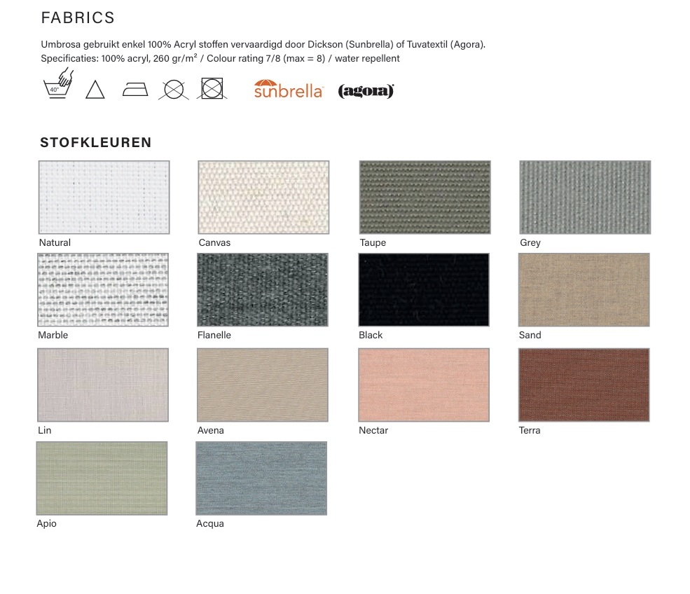 Let op: parasoldoeken worden op bestelling geproduceerd en kunnen niet worden geretourneerd of geruild.